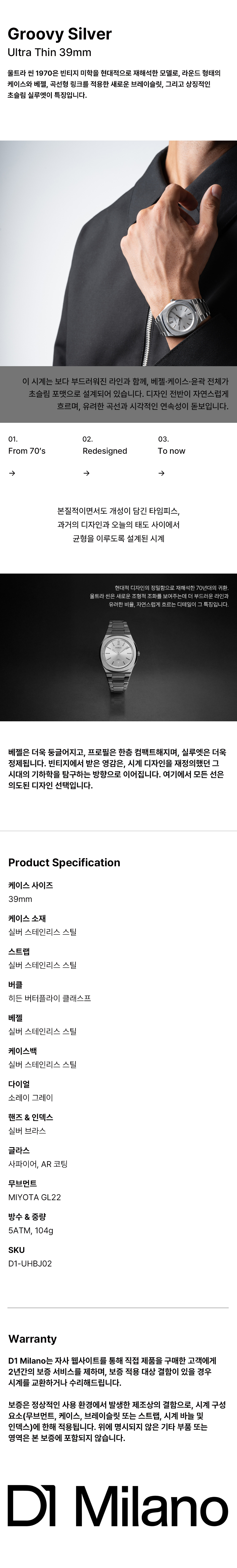 D1MILANO 울트라 씬 그루비 실버 39mm D1-UHBJ02